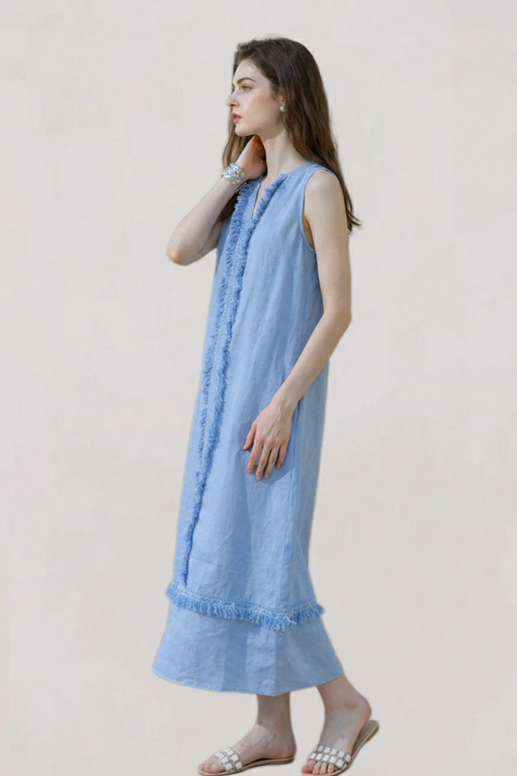Лен – основной материал для летней женской одежды. Стильное женское льняное платье-макси изготовлено из 100% высококачественной натуральной льняной ткани, полученной из высококачественного льняного сырья, и подвергается тщательной обработке, чтобы сохранить естественные характеристики льна, одновременно оптимизируя ощущение и избегая шероховатости. Самым выдающимся преимуществом льна является его превосходная воздухопроницаемость и поглощение влаги. Он намного превосходит обычные материалы, такие как хлопок и полиэстер, и способен быстро впитывать пот с поверхности кожи, ускоряя испарение и сохраняя пользователя сухим и комфортным даже жарким летом, устраняя ощущение духоты и липкости. Это «охлаждающее устройство» для летних нарядов.