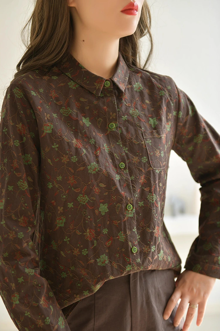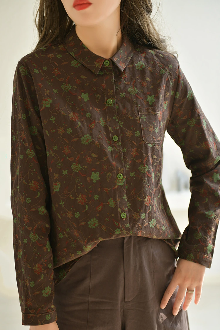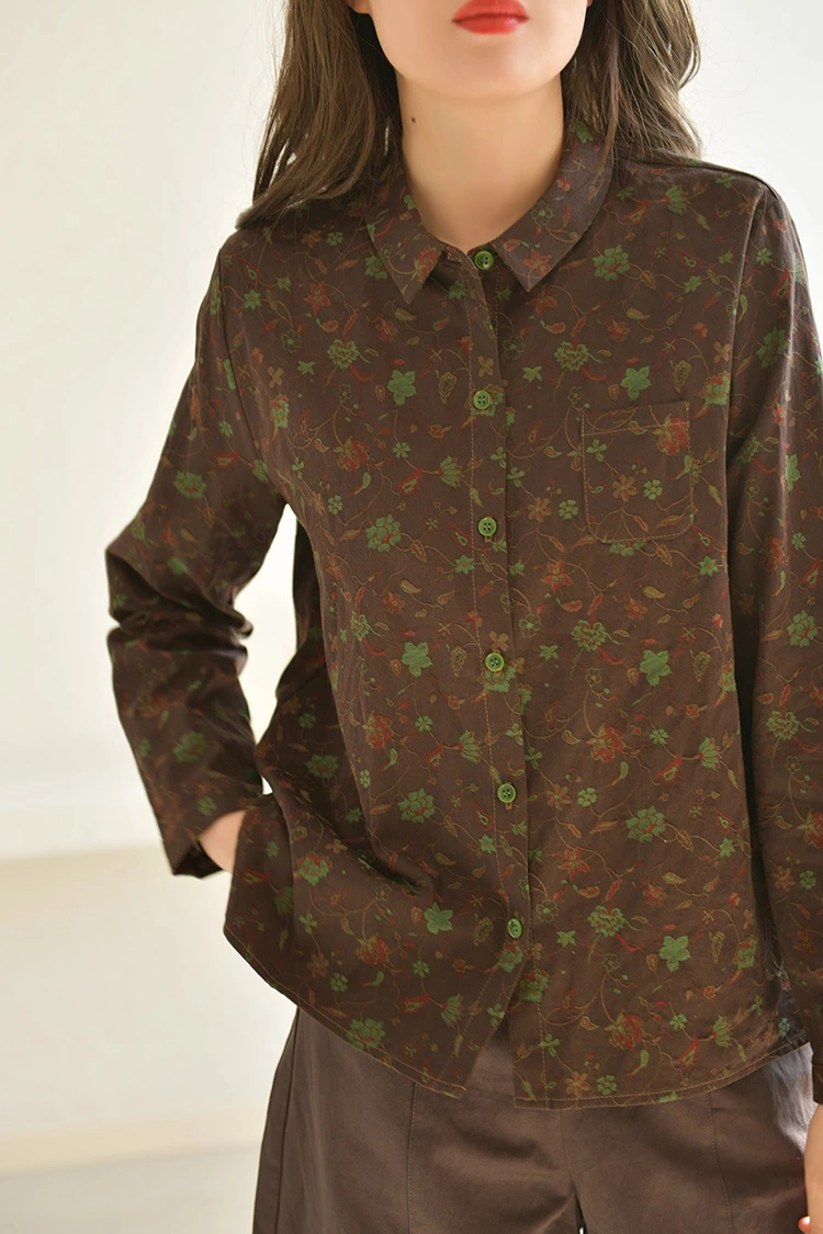 Чтобы одежда была удобной в ношении, первое, на что следует обратить внимание – это ткань. Женская повседневная блузка с цветочным принтом изготовлена из 100% высококачественной чистой хлопчатобумажной ткани, которая является самым популярным тканевым материалом на рынке для весеннего и осеннего сезонов. Он идеально отвечает основным требованиям покупателей к удобным и практичным вещам. Ткань из чистого хлопка обладает превосходной воздухопроницаемостью и отличным поглощением влаги. Весной и осенью он дарит прохладу и не потеет, бережен к коже и не вызывает раздражений, подходит для людей всех типов кожи, даже после длительного ношения не вызывает дискомфорта. Это может значительно улучшить качество ношения конечными потребителями. В то же время ткань из чистого хлопка обладает большой прочностью, долговечна и легко стирается. После ежедневной стирки не линяет, не деформируется и не линяет. Напечатанные узоры могут оставаться четкими и целостными долгое время, и нет необходимости в сложном уходе. Это существенно снижает послепродажные расходы для покупателей. Толщина ткани идеальная, не слишком тонкая и не слишком толстая, подходит для одноразового ношения, многослойной одежды и других различных стилей одежды. Он может удовлетворить ежедневные повседневные сценарии, а также удовлетворить потребности в легких поездках на работу, что еще больше расширяет сценарии продаж для конечных потребителей.